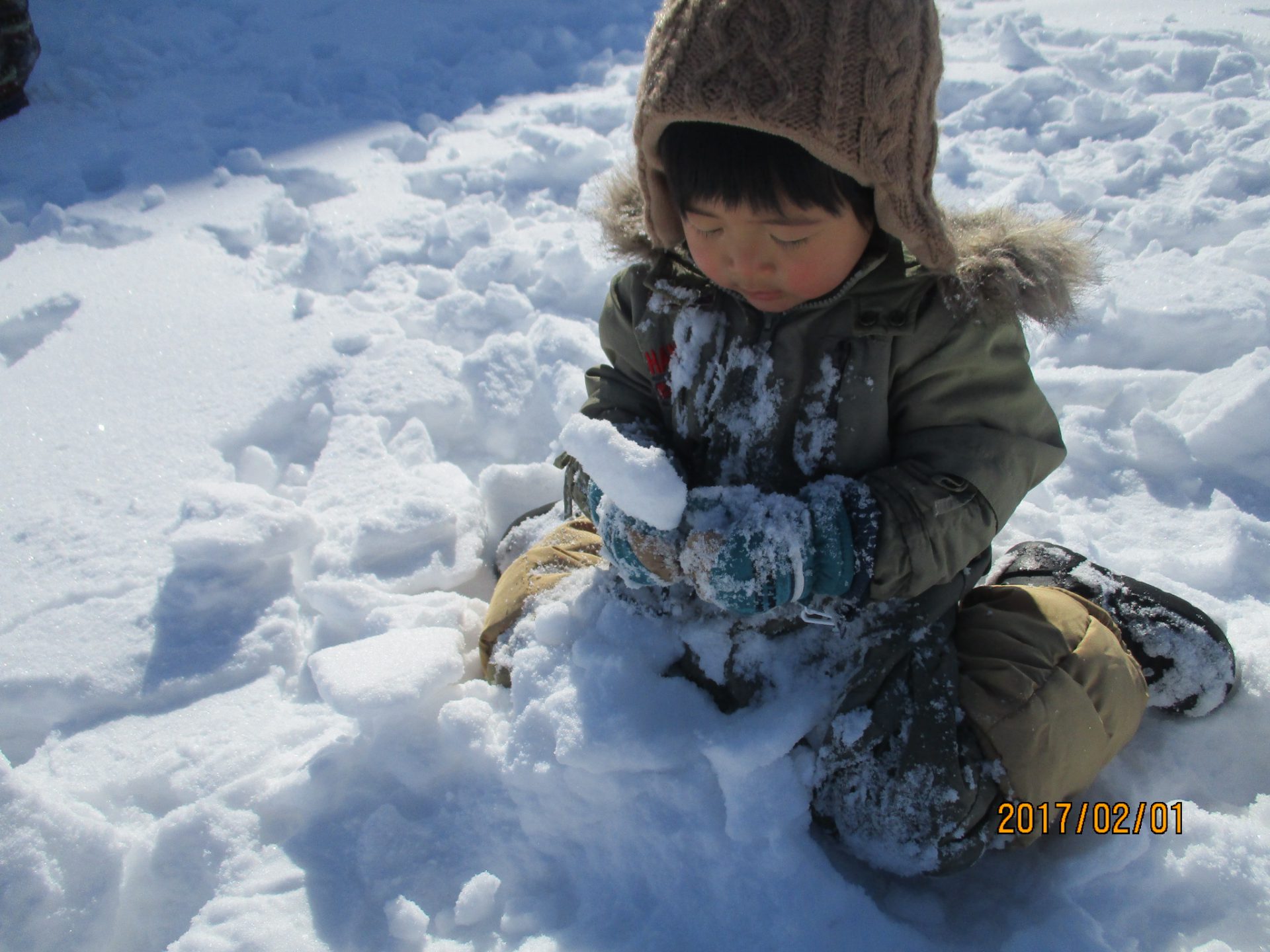 ザクザク、ザクザクと手で雪を少しずつ削り、雪の感触や削れる時の音を楽しんでいました。