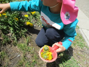 たんぽぽをたくさん摘んでおままごとに使うようです。