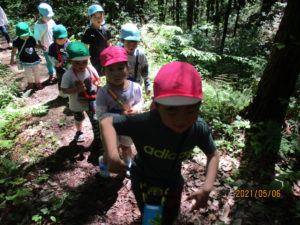 「案内は俺たちに任せて~!」と年中児が先頭に立って皆を連れて行きます。