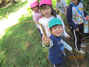 ・昨年年少児(現年中児)がよく遊びにいっていた麻績城跡に異年齢クラスで出かけます。