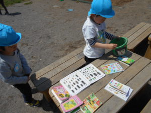それでもわからないこともまだまだあります。そんなときには・・・「この虫なんてなまえだろう?」「何をたべるのかな~」など、疑問に思ったら調べてみよう!と図鑑も用意して楽しんでいます。