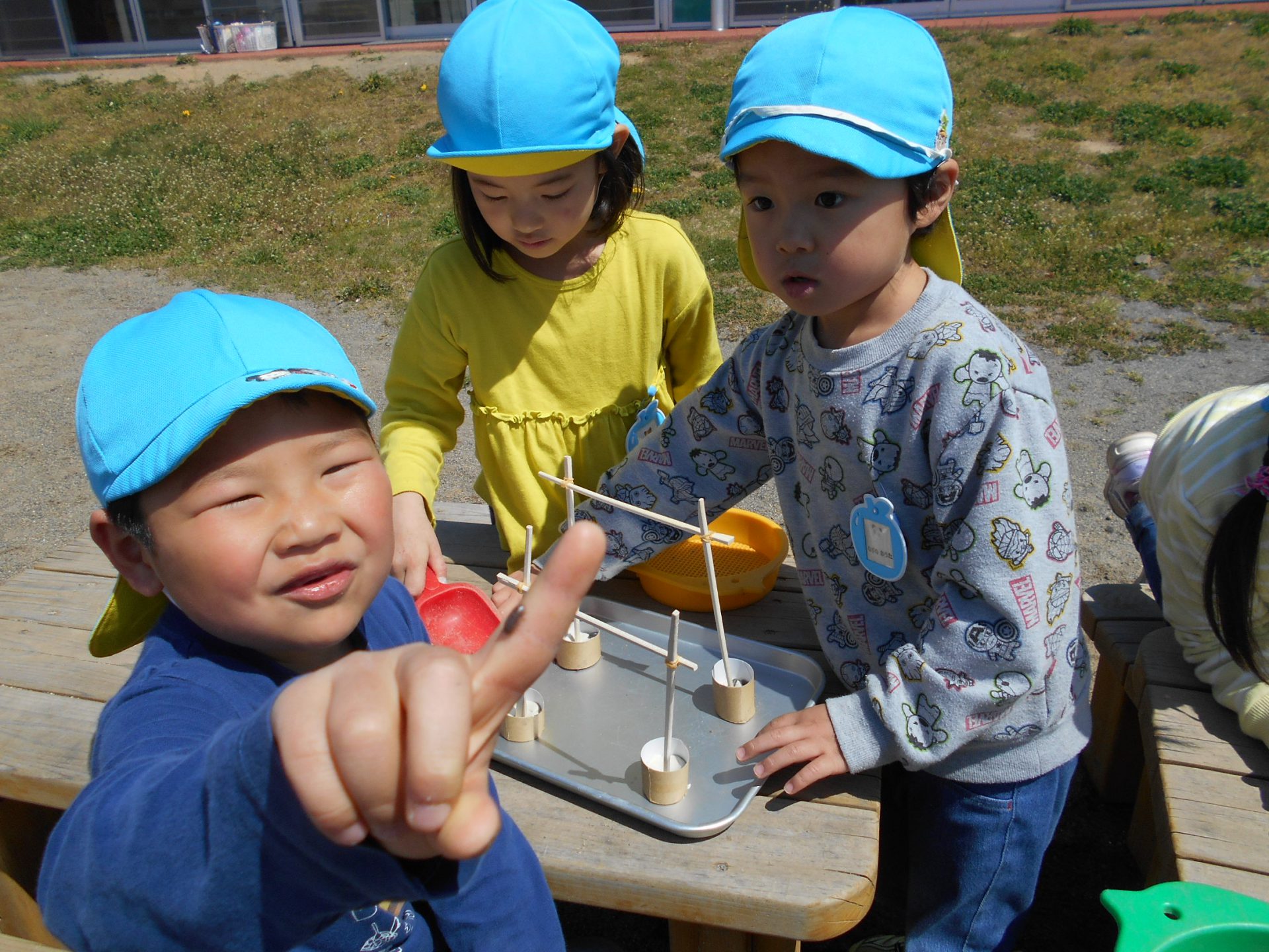 これから、広い園庭で他にもいろいろな出会いが待っていそうです。