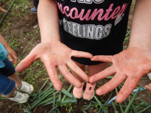 「玉ねぎの葉っぱをちぎったら、手がヌルヌル、ベタベタになっちゃった」