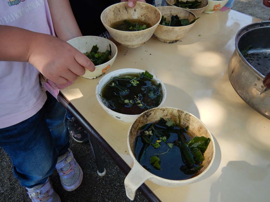 「玉ねぎの葉っはでスープができたよ」