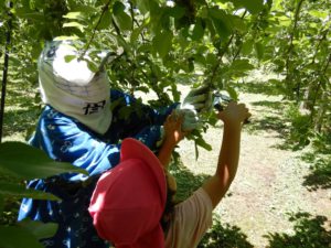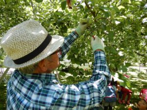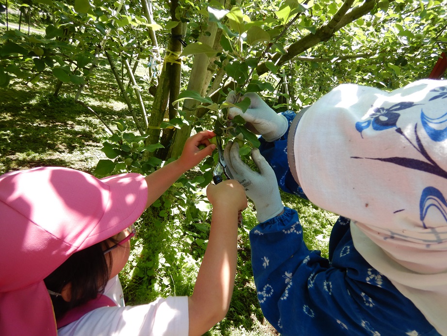 地域の方:「たくさんあるリンゴの中から大きな実を残して切ってね」