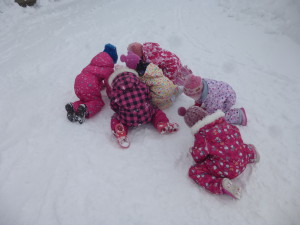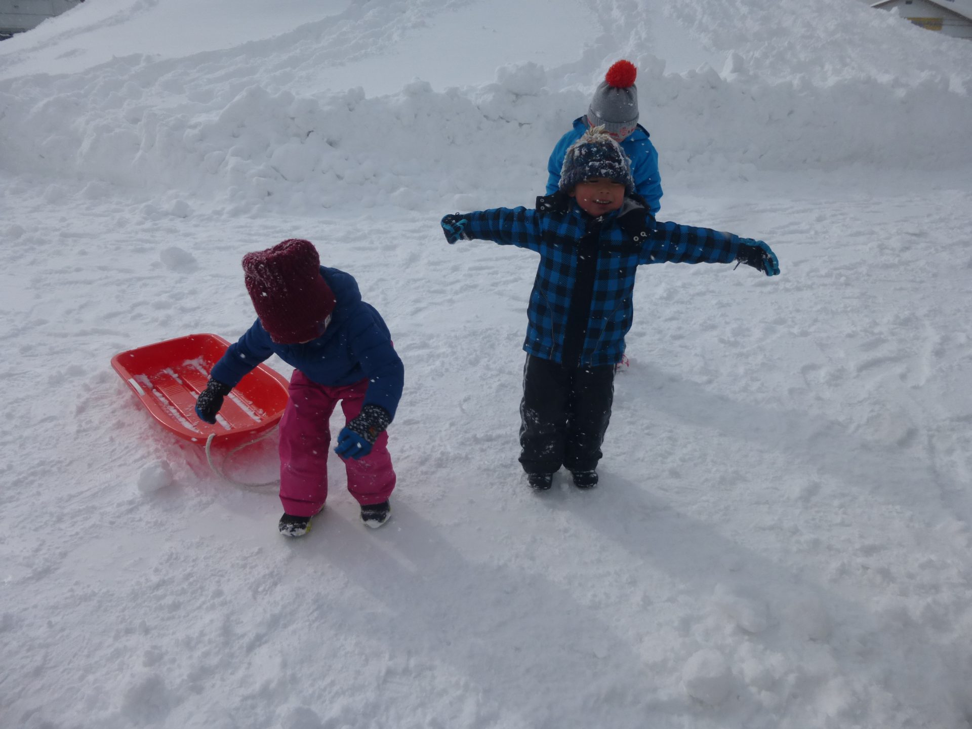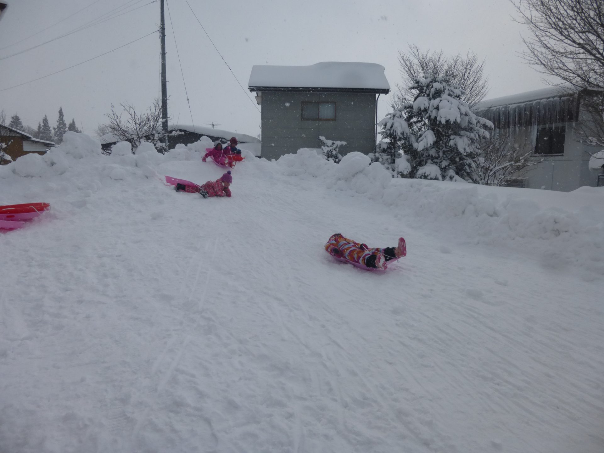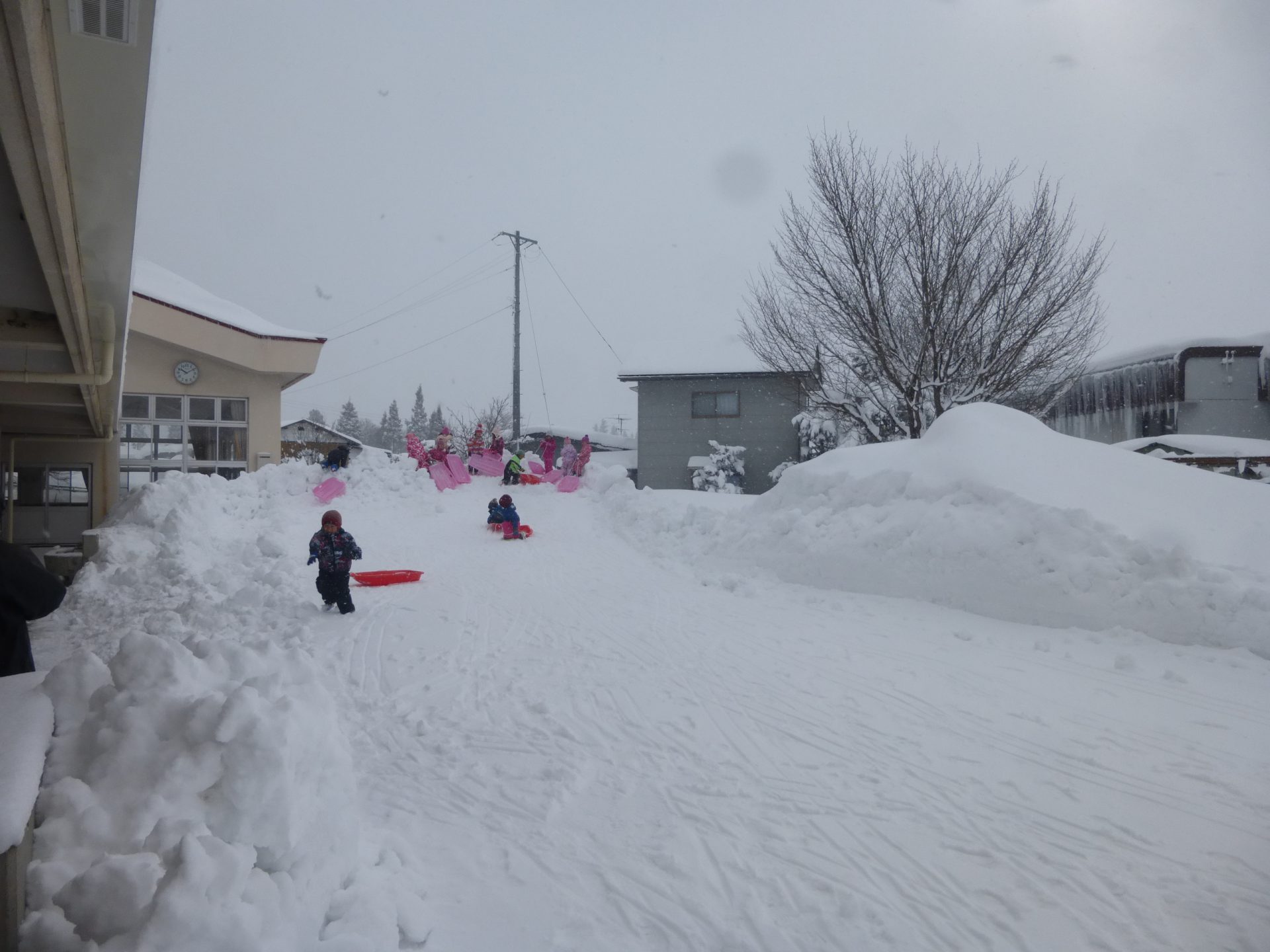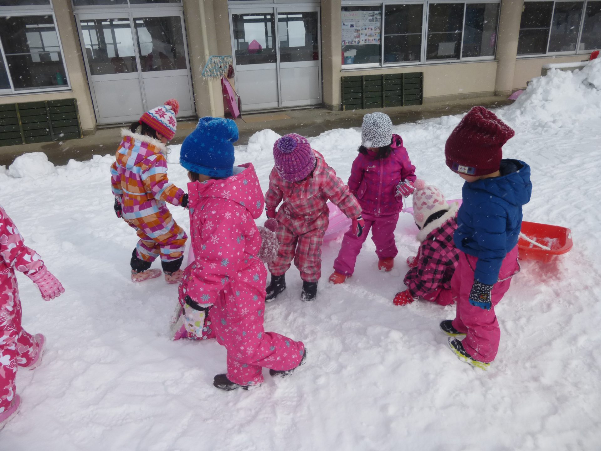 そんな様子を見ていた周りの子ども達も「何があるの?」と寄ってきて一緒に探したり、滑ってみたりと楽しんだ雪遊びでした。