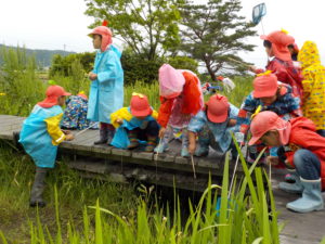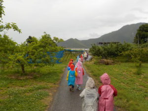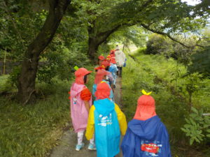 この日は小雨が降っていましたが、散歩に出かけた子ども達。