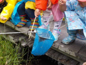 友達と助け合いながらザリガニ釣りを楽しんだ子ども達。これからも友達と力を合わせて