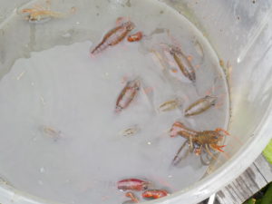 釣り始めてから数分でバケツの中はザリガニでいっぱいになりました。
