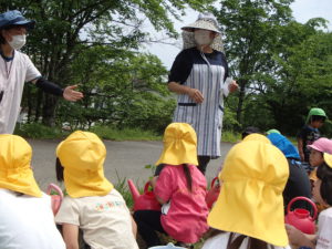 ・塩澤さんには毎年大豆の種まきから消毒、収穫までお世話になっています。保育園で作った大豆を使ってお豆腐やお味噌、豆まきにも使っていきたいと考えています。