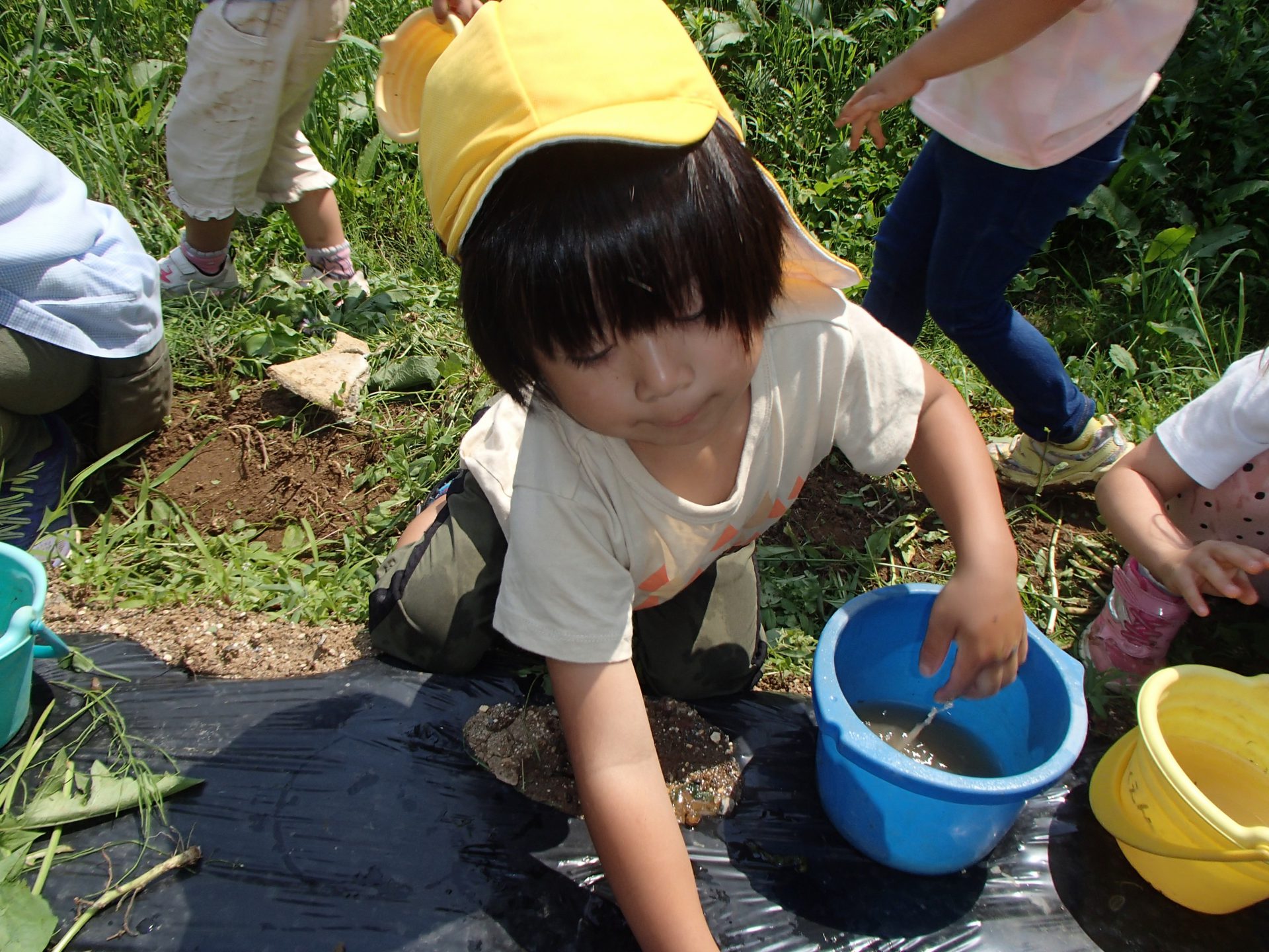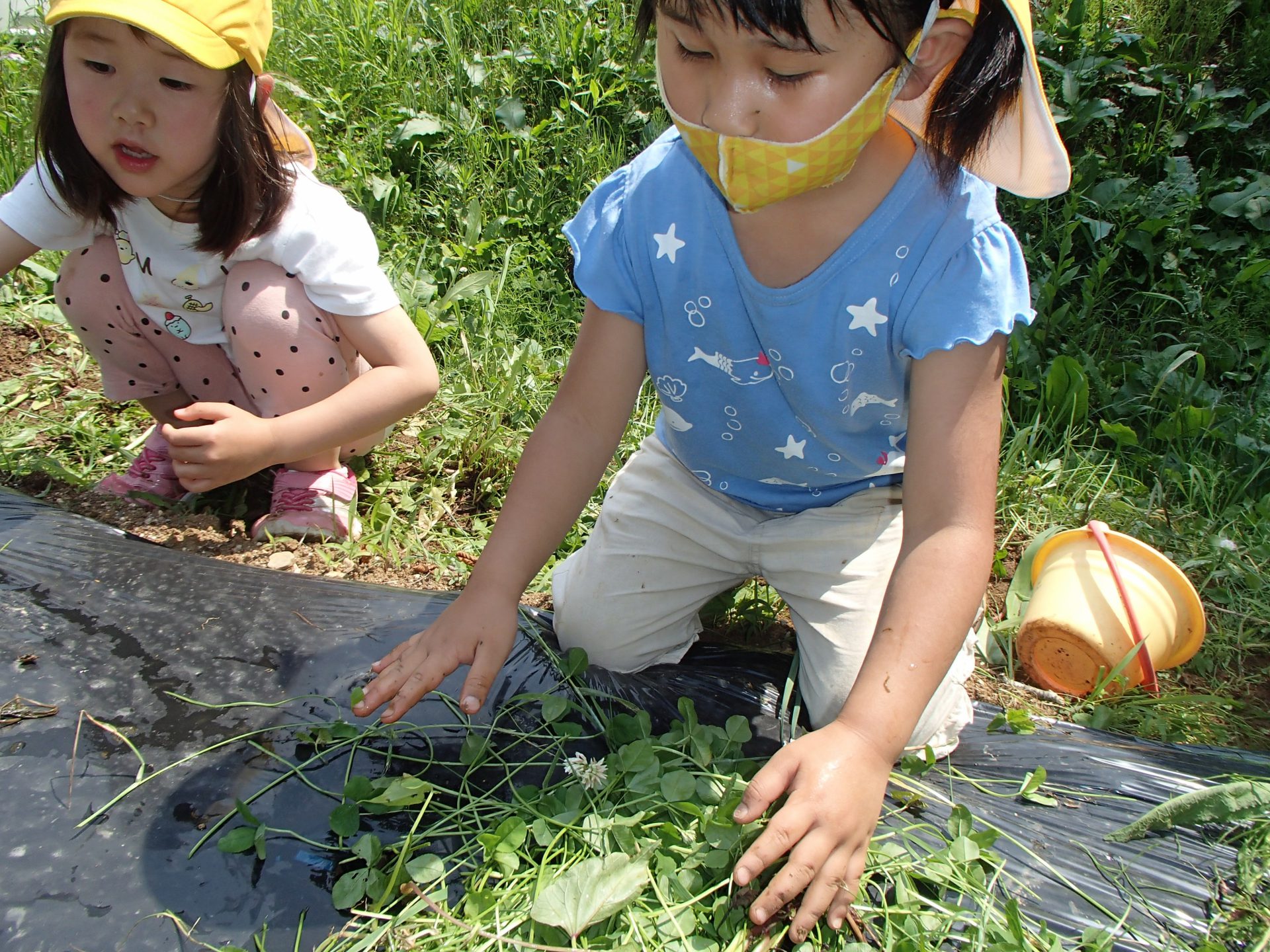 「暑いとお芋が火傷しちゃうから草のお布団かけて守ってあげるね。」