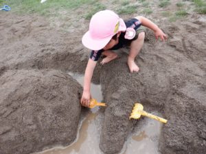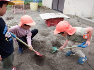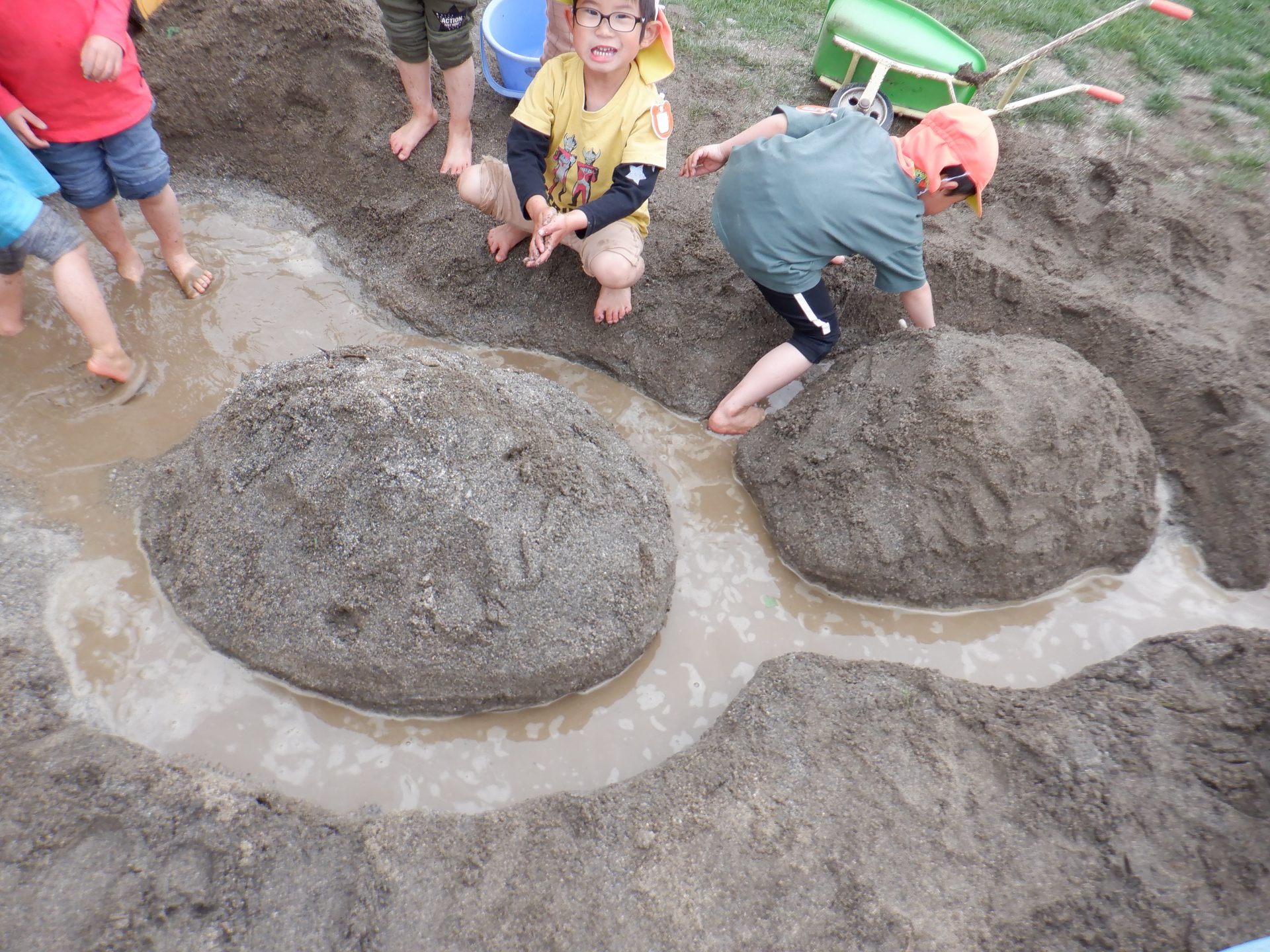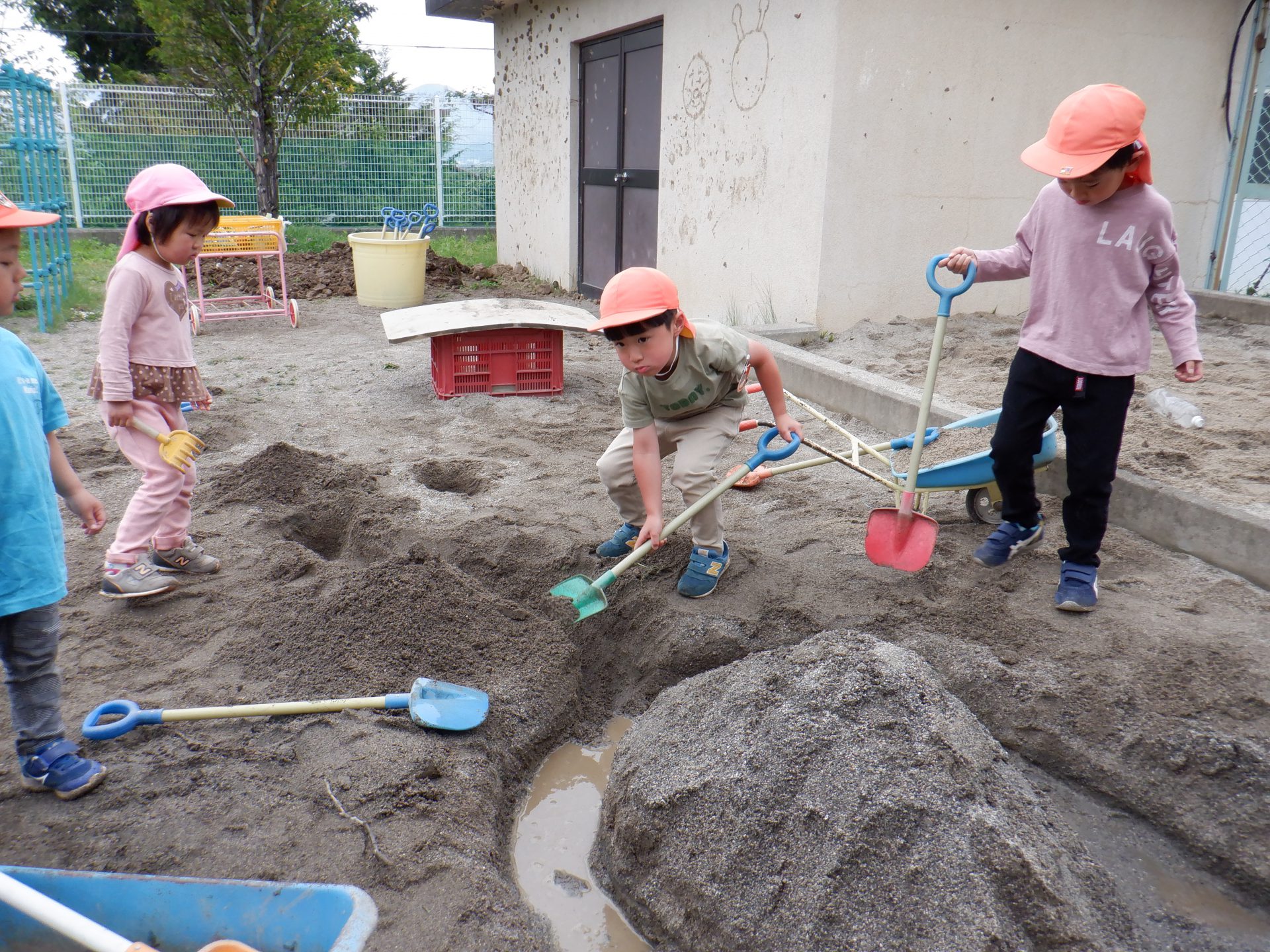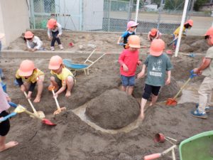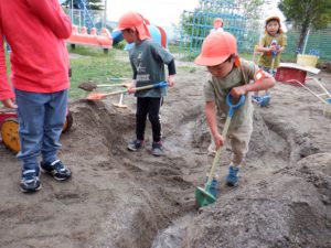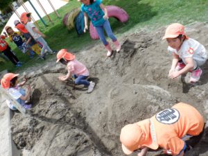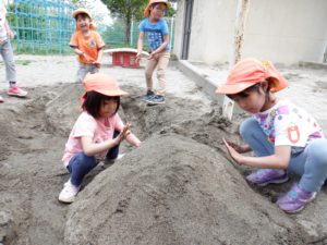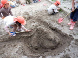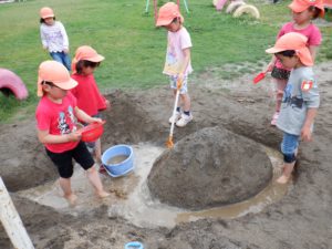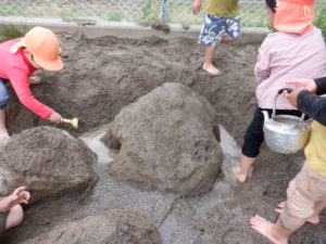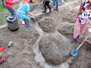 この日は、砂場でコツコツ少人数で山作りがはじまりました。