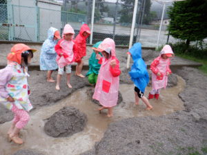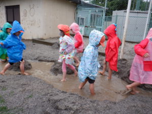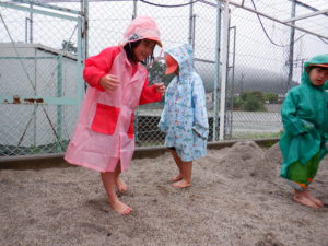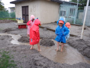 四日目。待ちに待った雨!!朝からルンルンで登園。