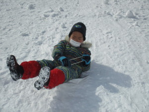 さすが、野尻の子!!足が滑ろうと、手袋が外れようと頂上を目指しています。
