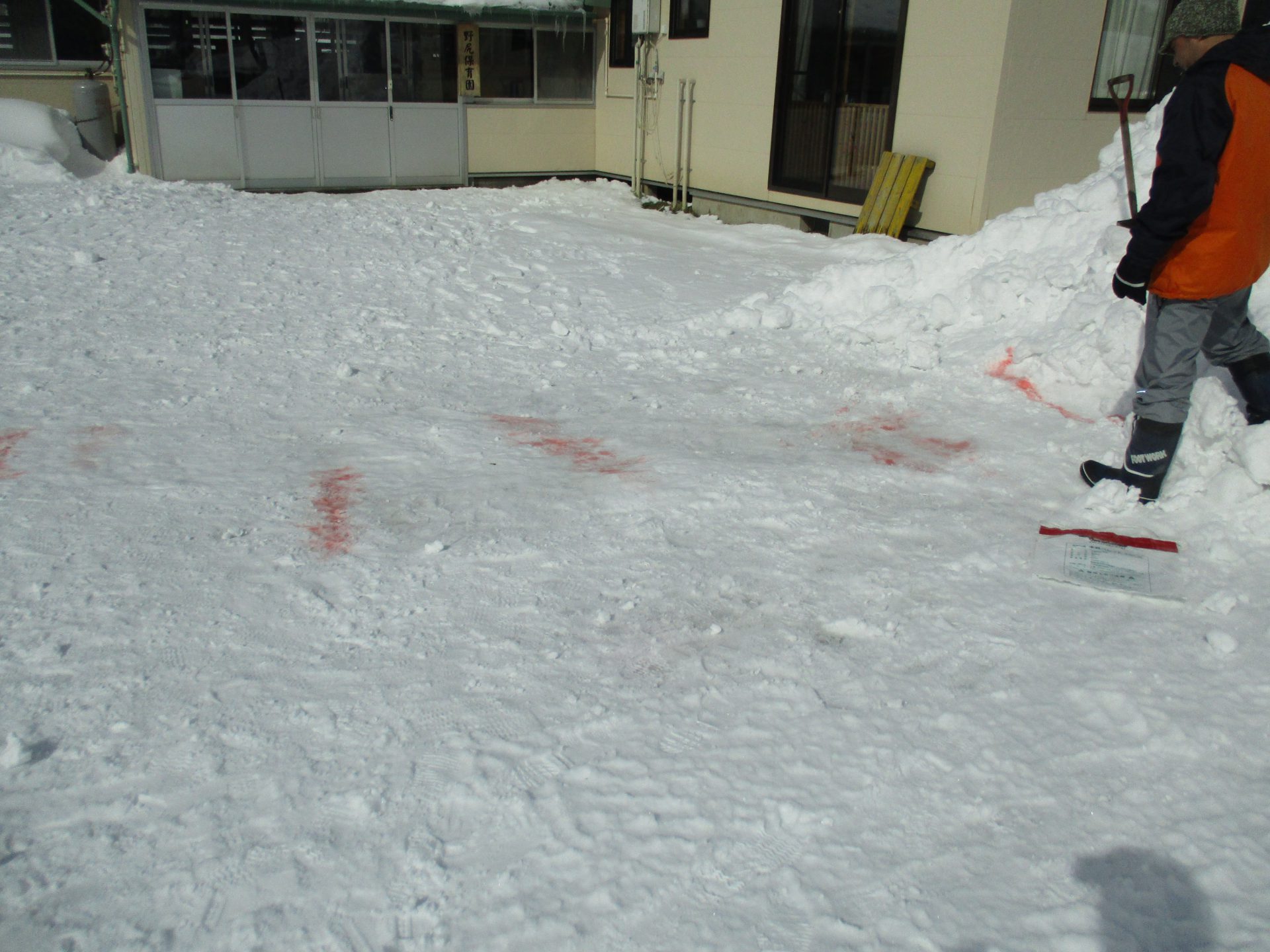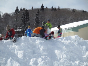 その声と同時に一斉に肥料袋を持ち、雪山を駆け上るお友だち。