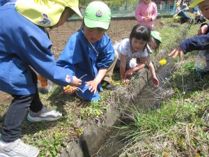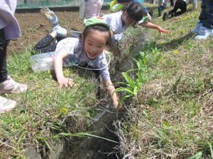 保育園の近くの田んぼの土手で花を摘んだり虫を捕まえたりして遊んでいました。