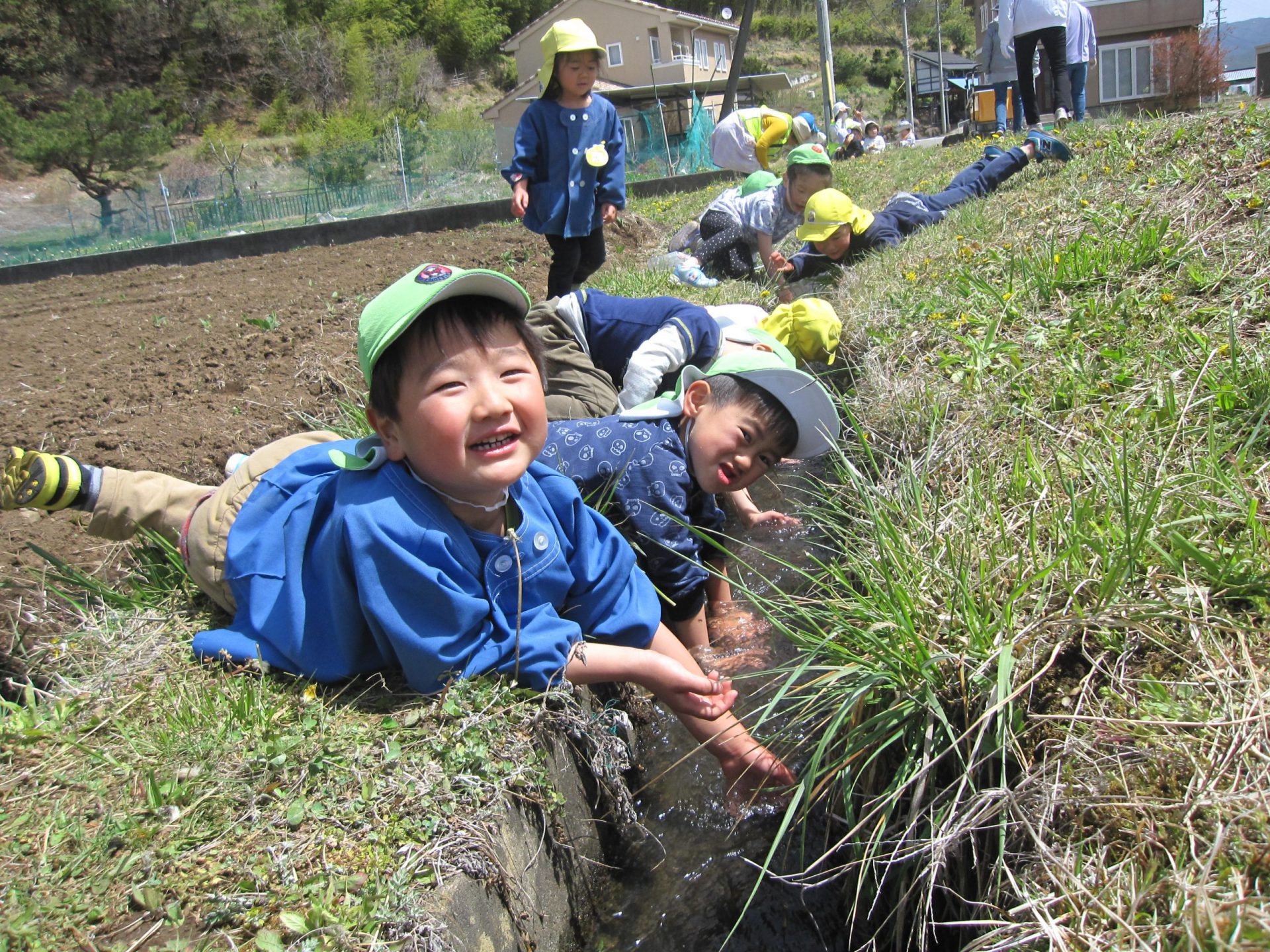 初めは、川の流れが怖くて近づけなかった子どもも、友達が楽しそうに遊んでいる姿を見ていて、怖さがなくなり遊び始めました。