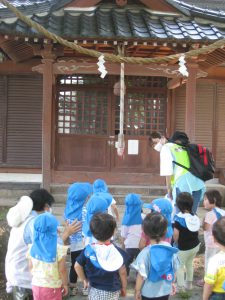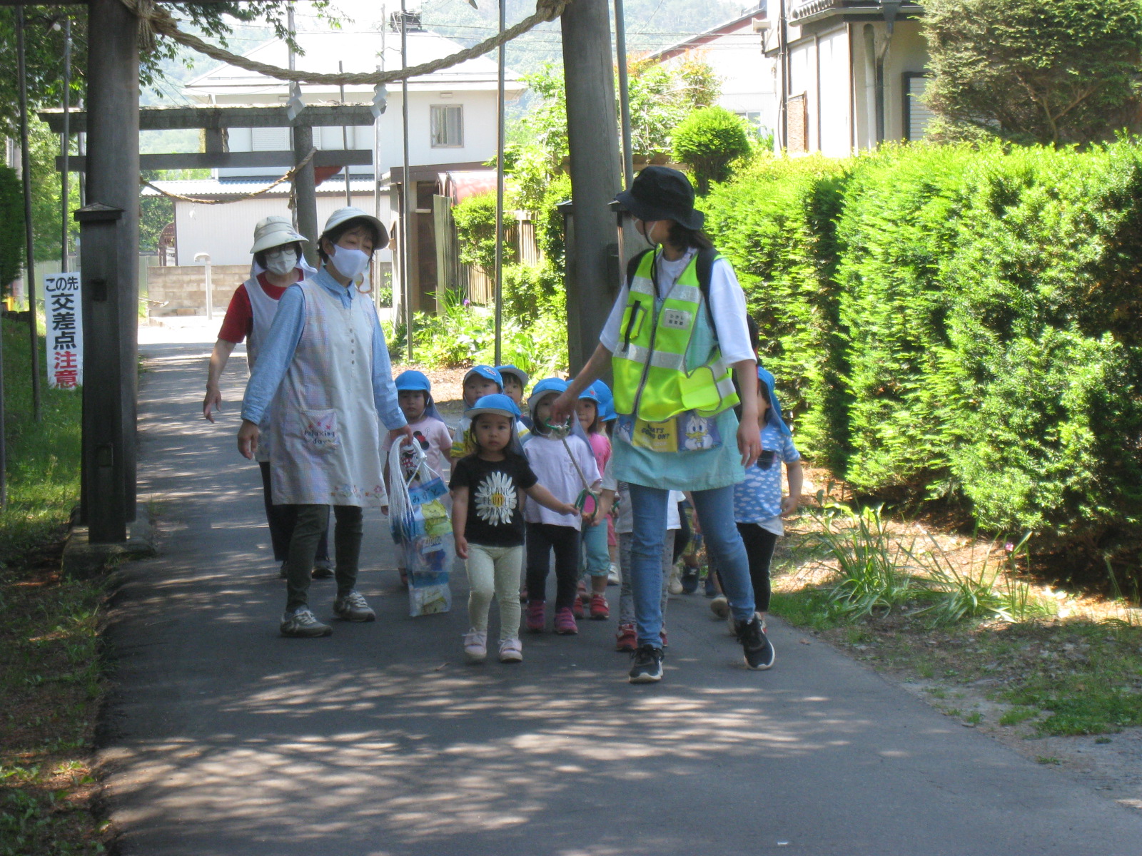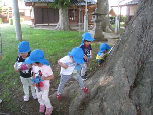 2歳児さんは、園舎の東側の八幡神社様へお散歩です!