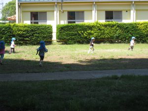園の水遊びでは、本当に自然と異年齢で遊びが盛り上がり、子どもも、保育士も笑顔と歓声で溢れていました。