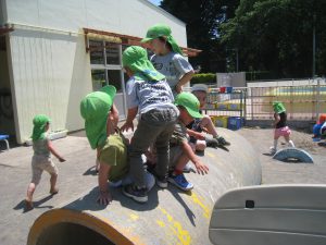 この場所では、4歳児のお友だちが、土管を乗り物に見立て、盛り上がっていました!