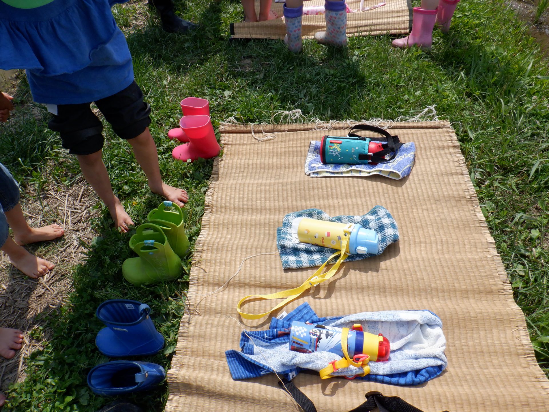 先日の田植えでは、長靴で入る子達が多かったのですが、今回は全員が裸足で中へ!