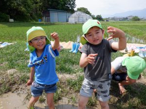 田んぼの経験が多いそらぐみの子達はどんどん前に進んでいきます。