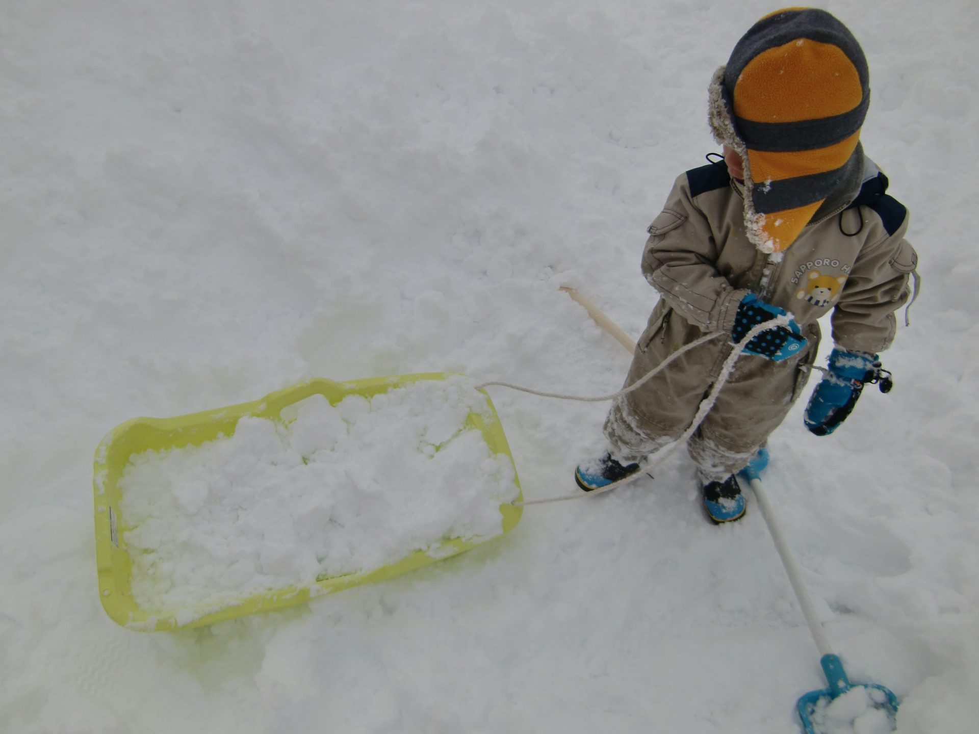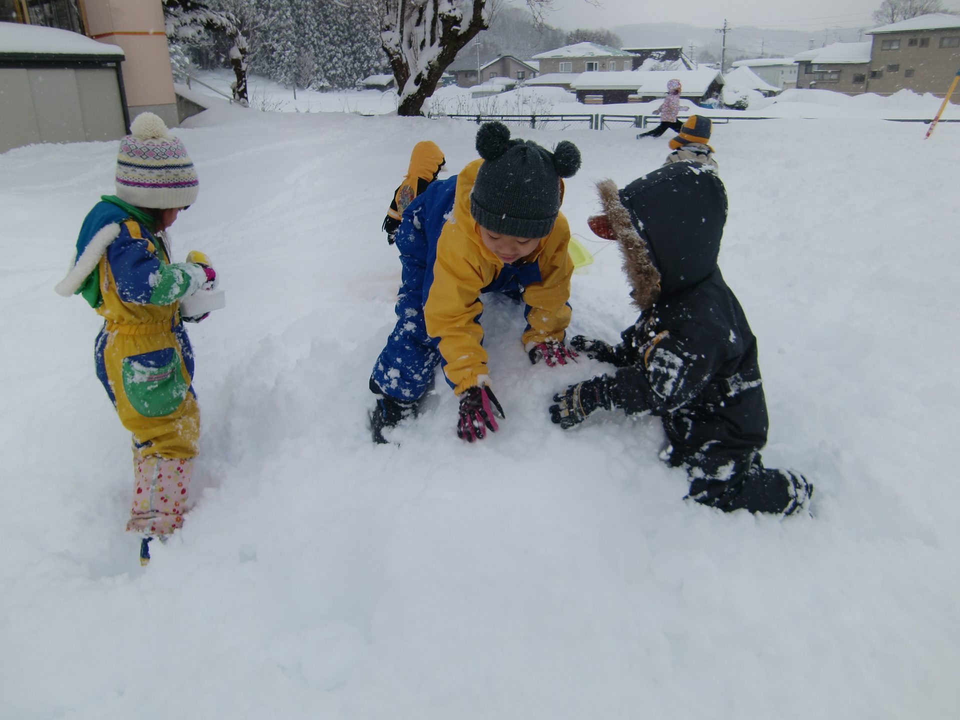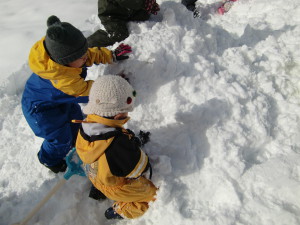 ふかふかの雪を踏み分け道を開拓したり、ソリ滑りをしたり、雪合戦をしたりと、たくさんの雪と触れあう中で、その日ごとの雪の様子にも少しずつ気付けるようになりました。
