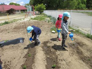 畑活動を通して土の感触を味わったり、植物を育てる大変さや楽しさ、達成感を味わってほしい。