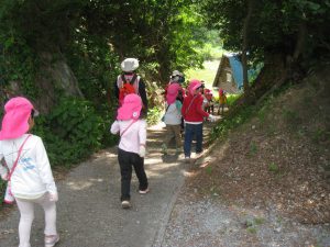 今日も5歳児月組さんは大好きな権現山へ散歩ヘ出掛けました。「権現山へいざ参ろう!」と元気に出発です。