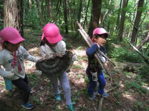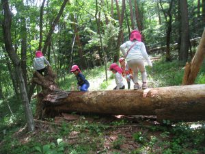 山遊びを通して様々な経験をすることで全身機能を伸ばしたり、自分で危険から身を守ること、挑戦すること友だちとの関わりなど多くのことを学んでいると思います。