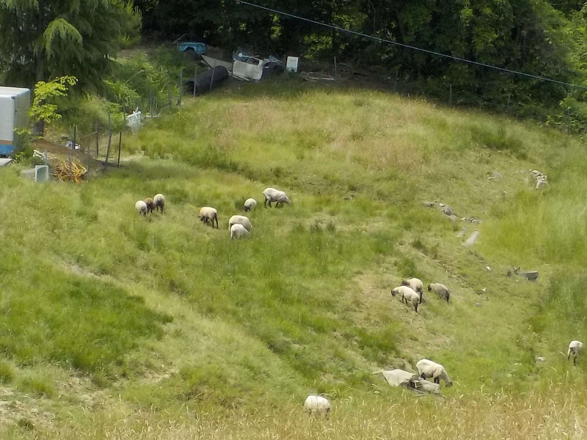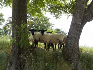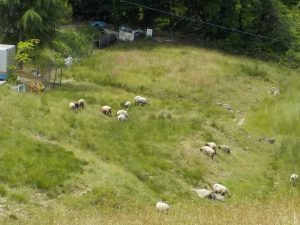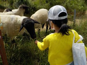 親子歩いて行くと、中間地点の「綿羊牧場」に着きました。