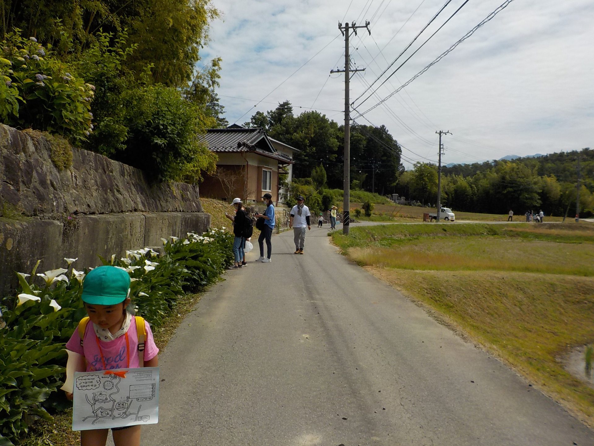家族参観日の日、お天気にも恵まれて、親子で地域の中をハイキングに出かけました。