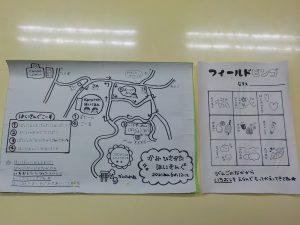 ハイキングの地図とネイチャーゲームのカードを持って出発です。