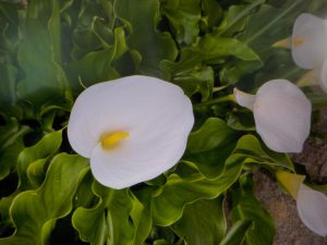 途中にカラーのお花が沢山咲いている花壇を見つけました。