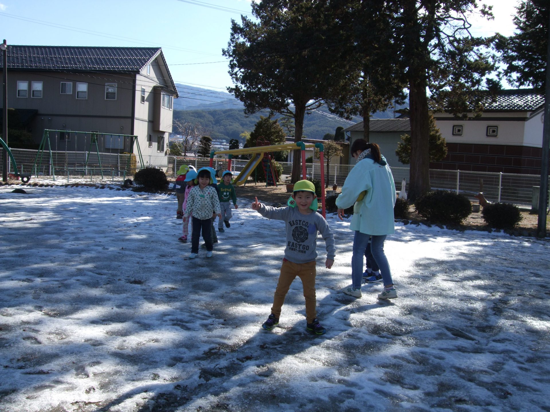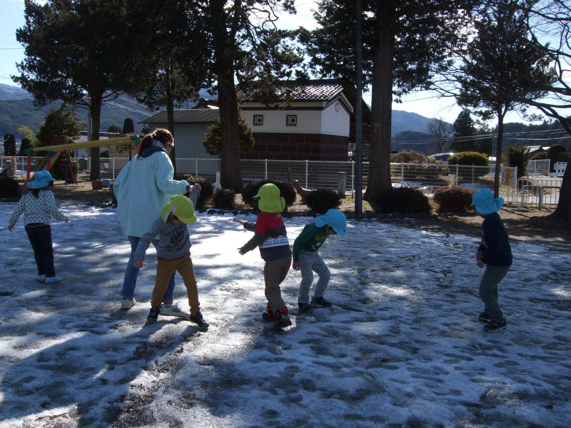 今年の冬は雪も少なく雪遊びがなかなかできませんが、木陰にできた天然のスケートリンクを見つけて遊びがはじまりました。