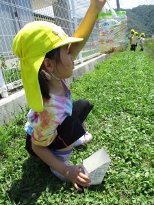 そんな子どもたちの気持ちに寄り添ってくれるお家の方にも感謝しつつ、園でもおたまじゃくしから足、手がはえ、しっぽがなくなっていく様子に注目しながらお世話をし、小さな生き物でも大切な命があることを感じてもらえる経験になればいいなと思います。