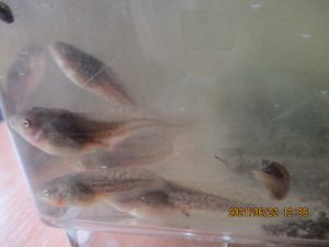 「おたまじゃくしかわいい~、目がくりくりしているよー」