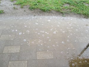 大きい雨粒と小さい雨粒がある。雨の音を聞いて「大きい雨ぼんぼん!って言うよ。」