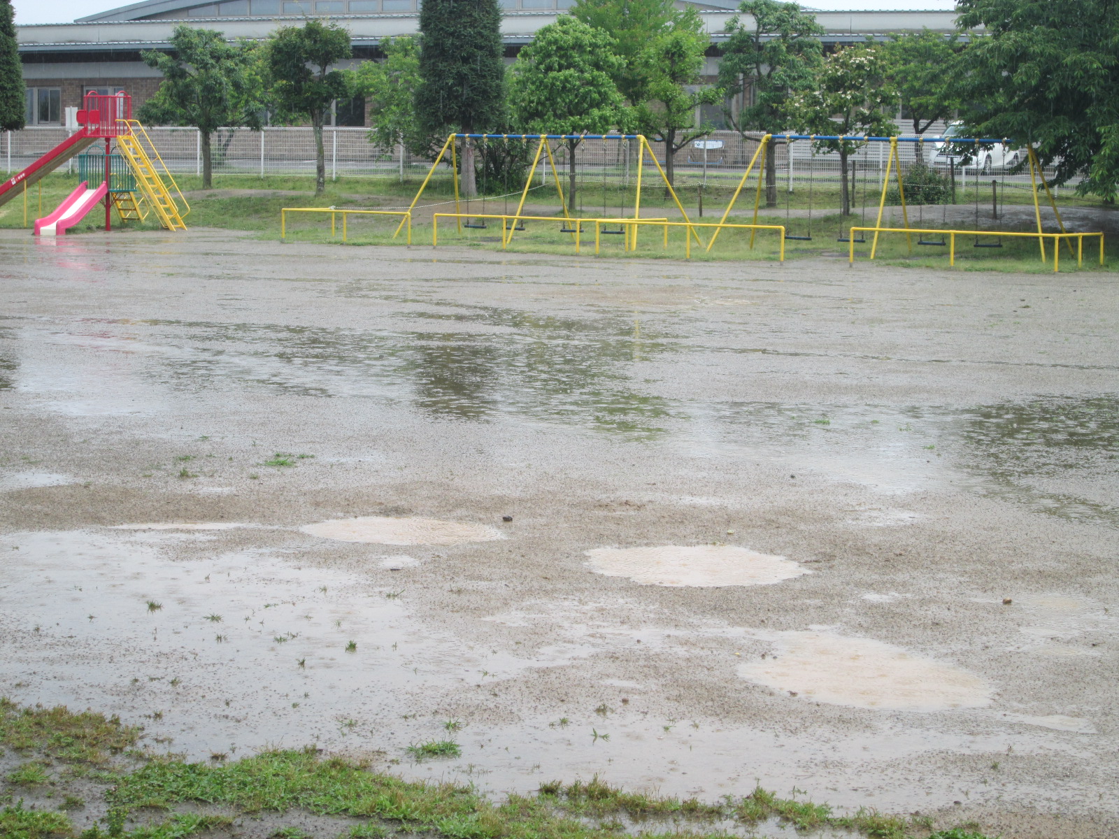 「にじんできたね!」「はじいてるよ」 「つめた~い!!!」「(水たまりに)パシャパシャ」「おもしろいね~!」