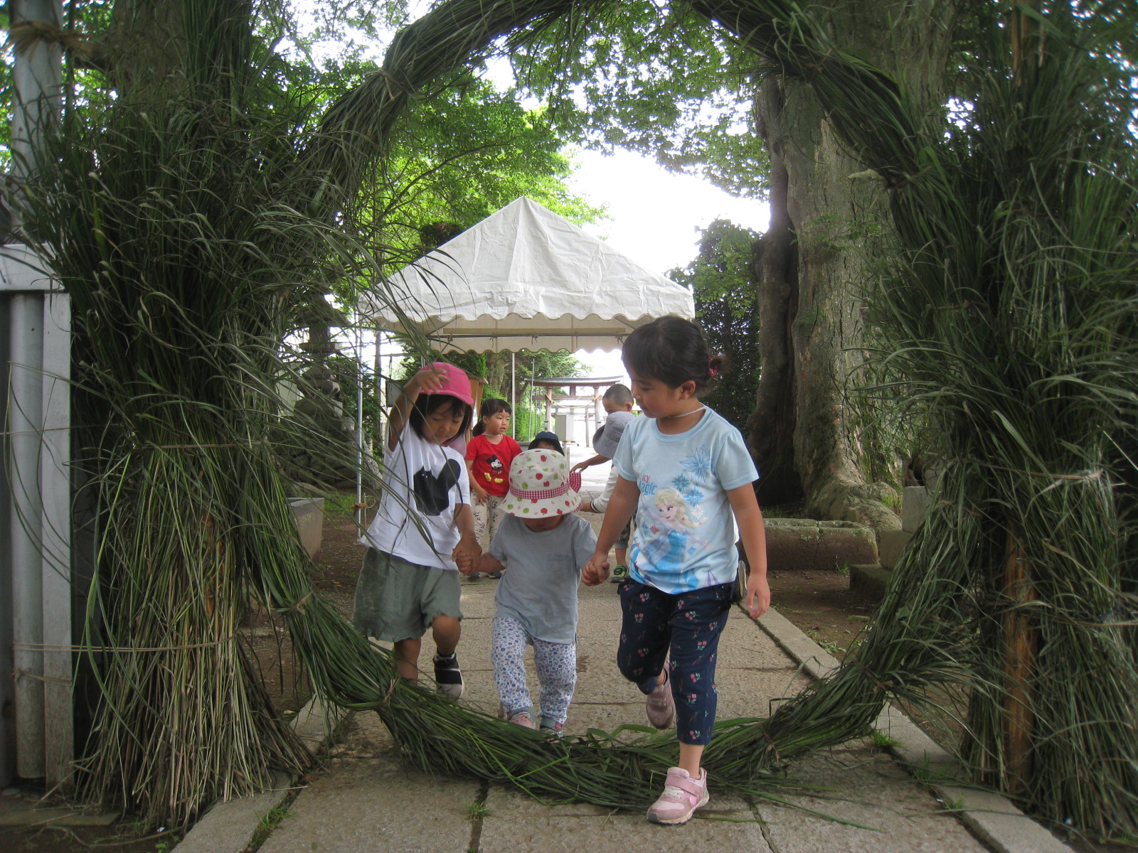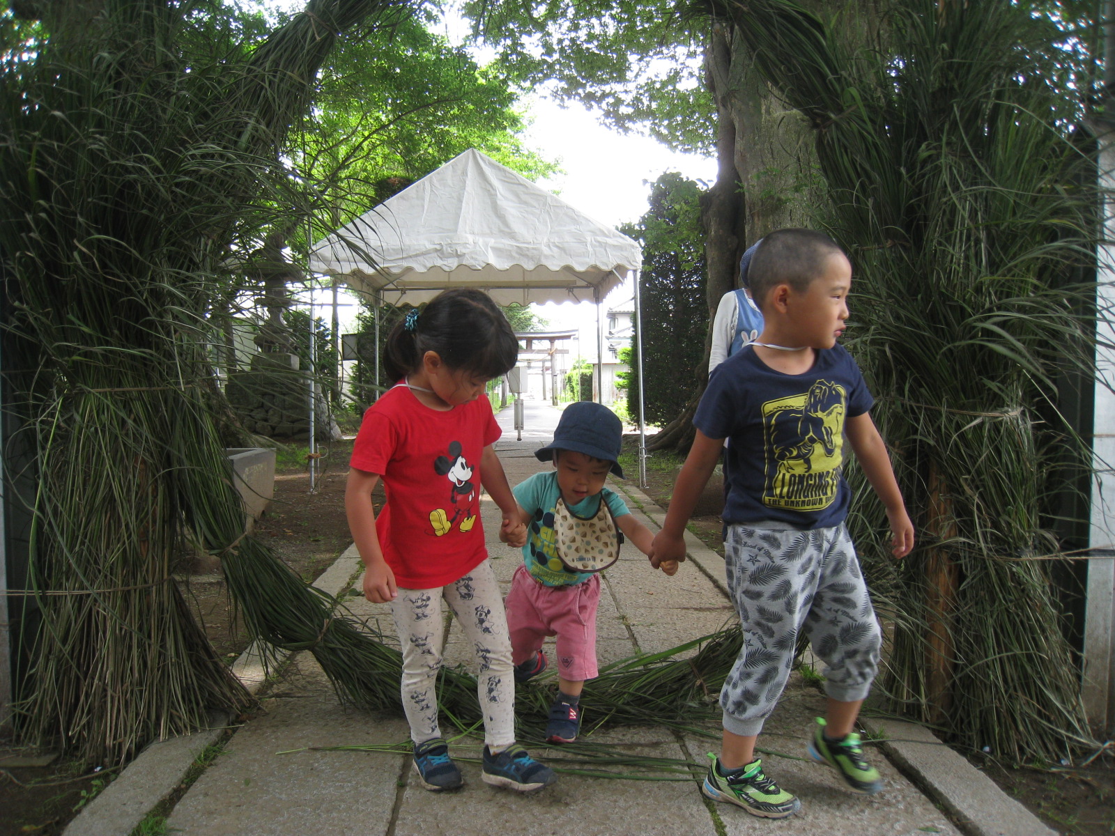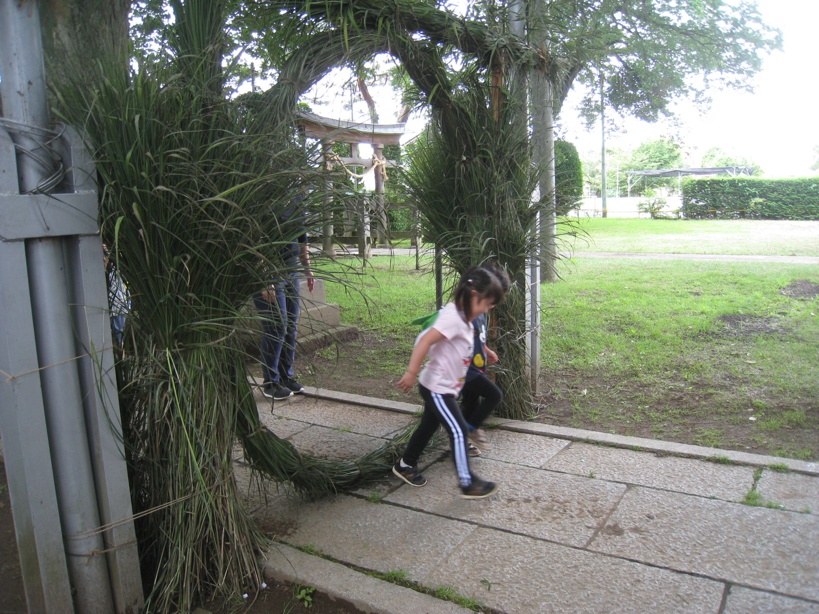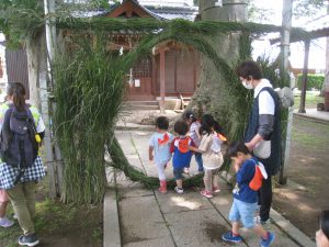 『茅の輪くぐり』だそうです。八の字を描くように茅の輪をくぐることで厄が落ち身が清められるそうです。