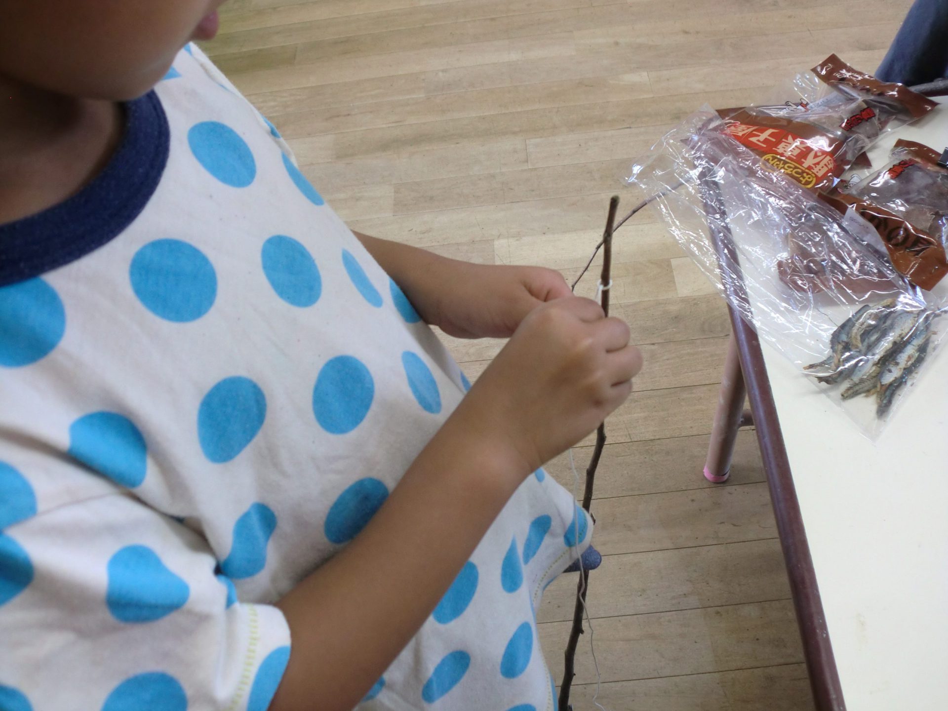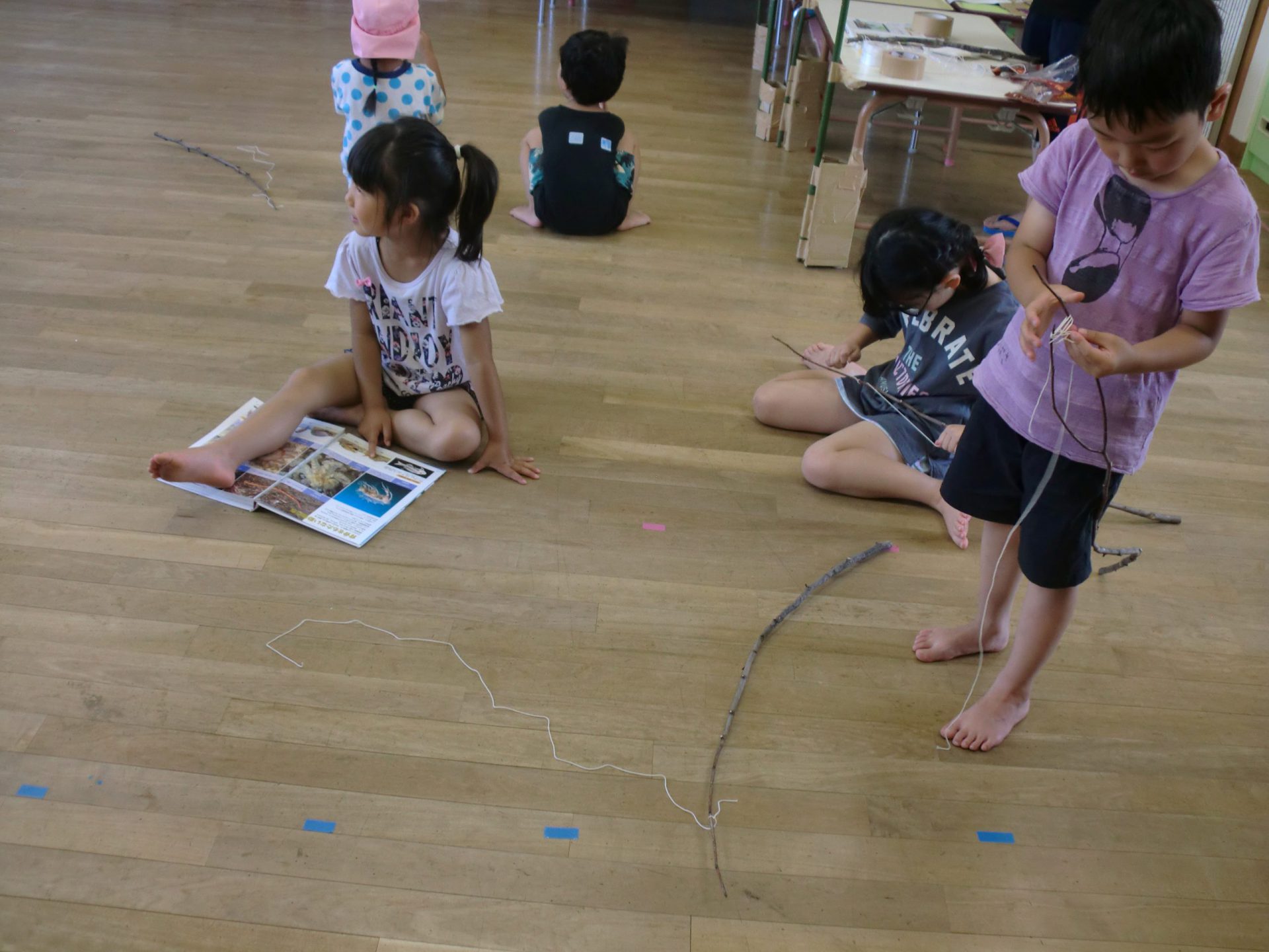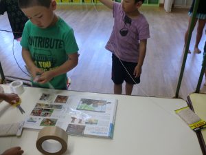 「ビニール紐にしよう」「たこの時の紐にしようかな?」