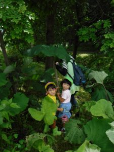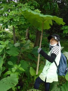 先生より大きいふきのはっぱ。