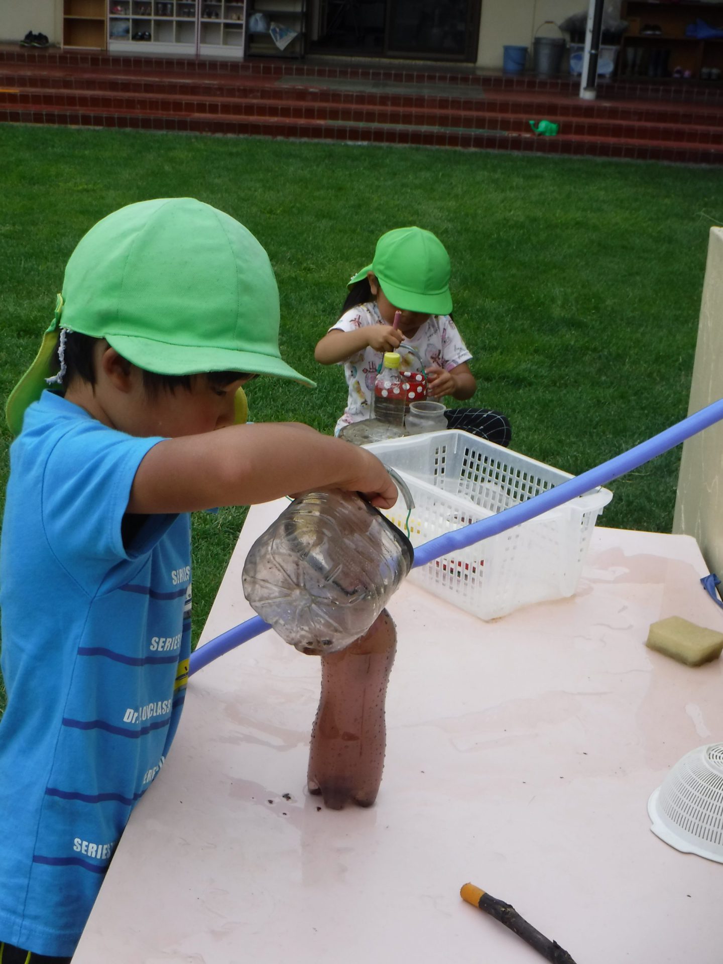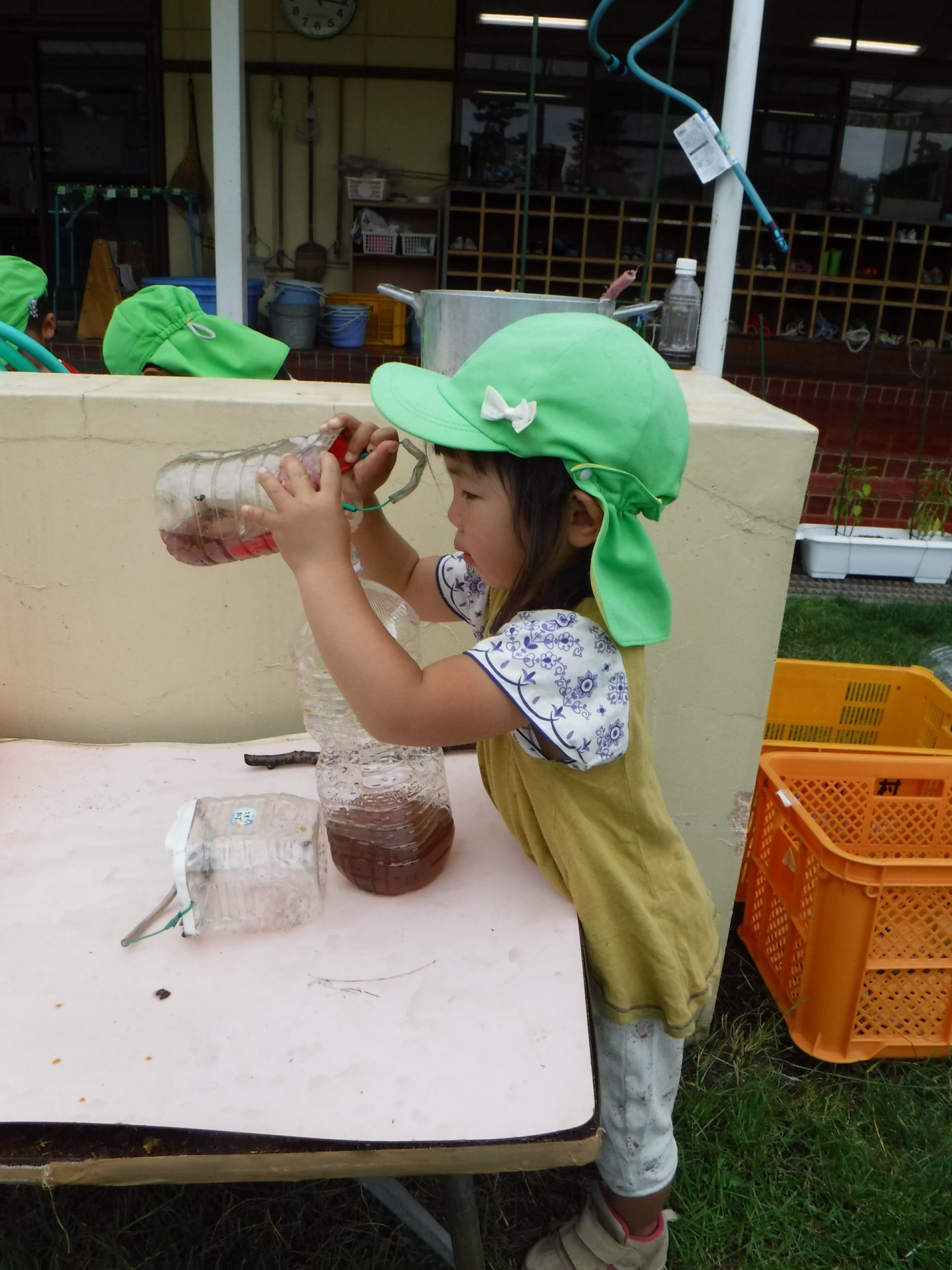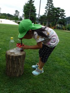 散歩から帰ってきて、早速色水づくり。