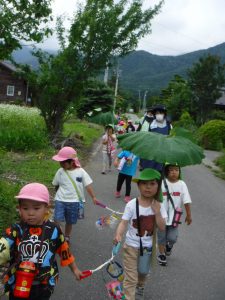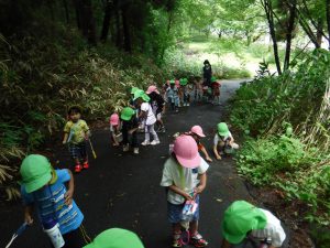 今日は年少、年中で室山へ木いちご探しのお散歩。