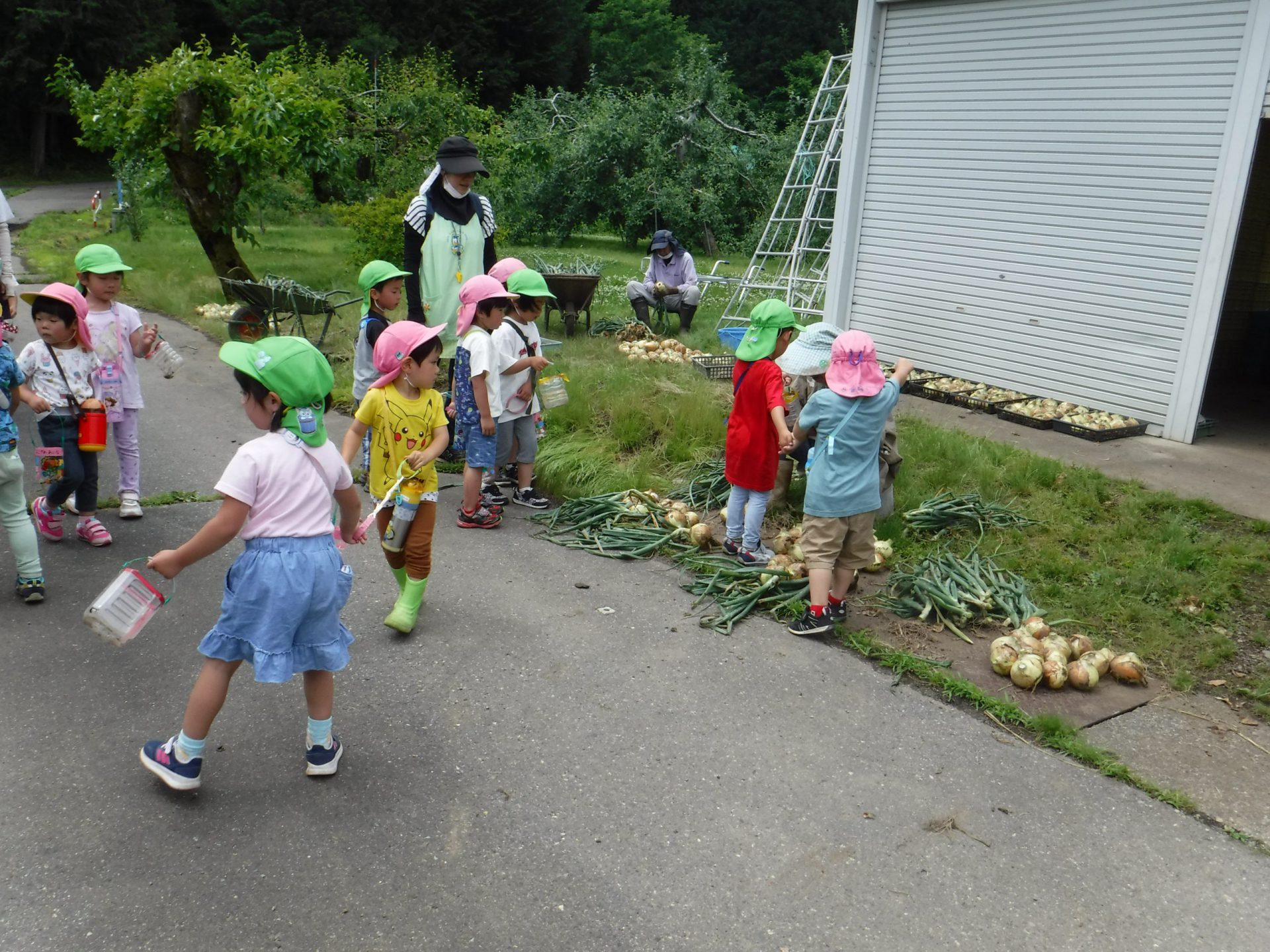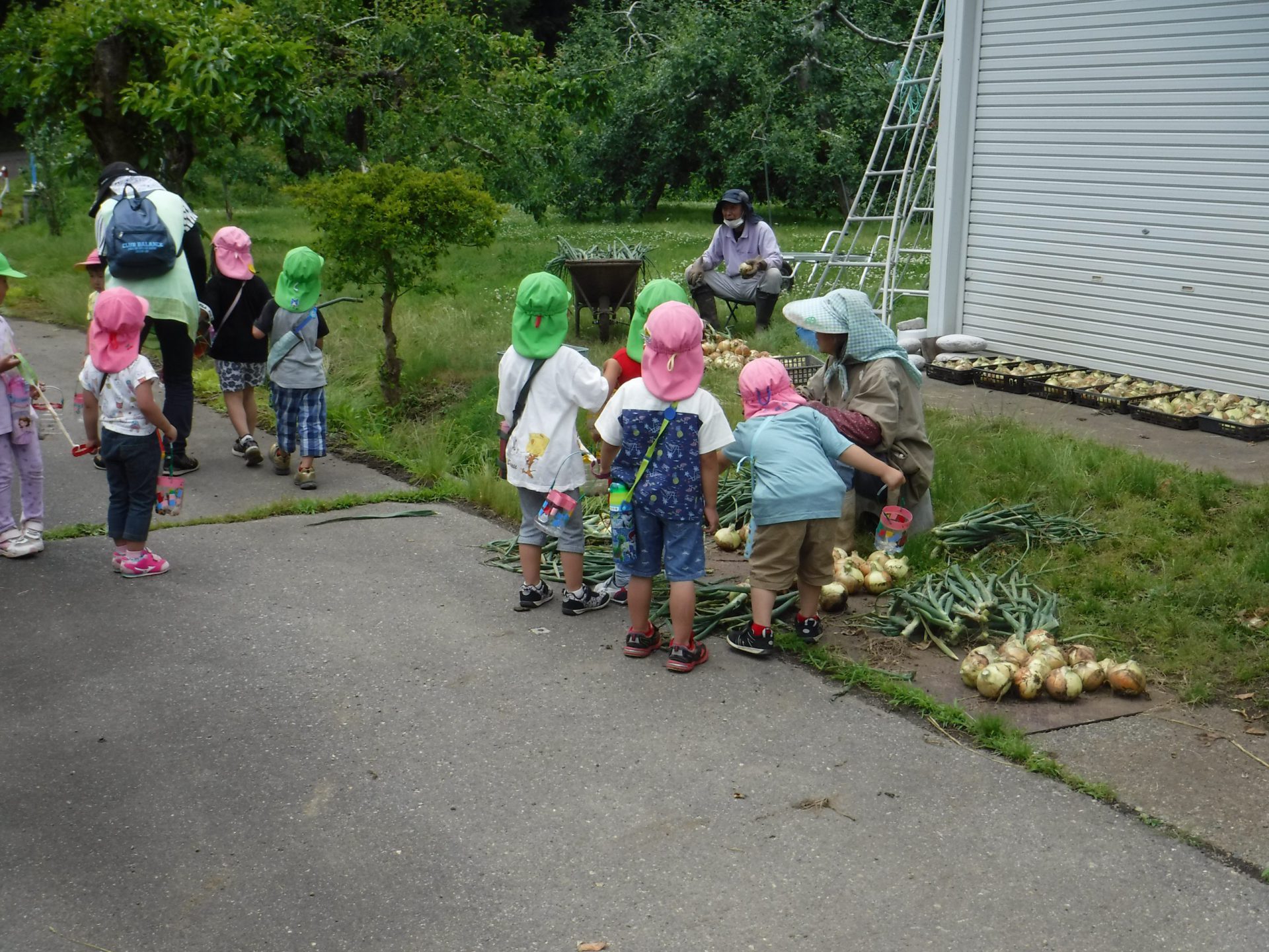 帰り道で、地域の方が”玉ねぎ”の収穫をしているところを見せていただきました。