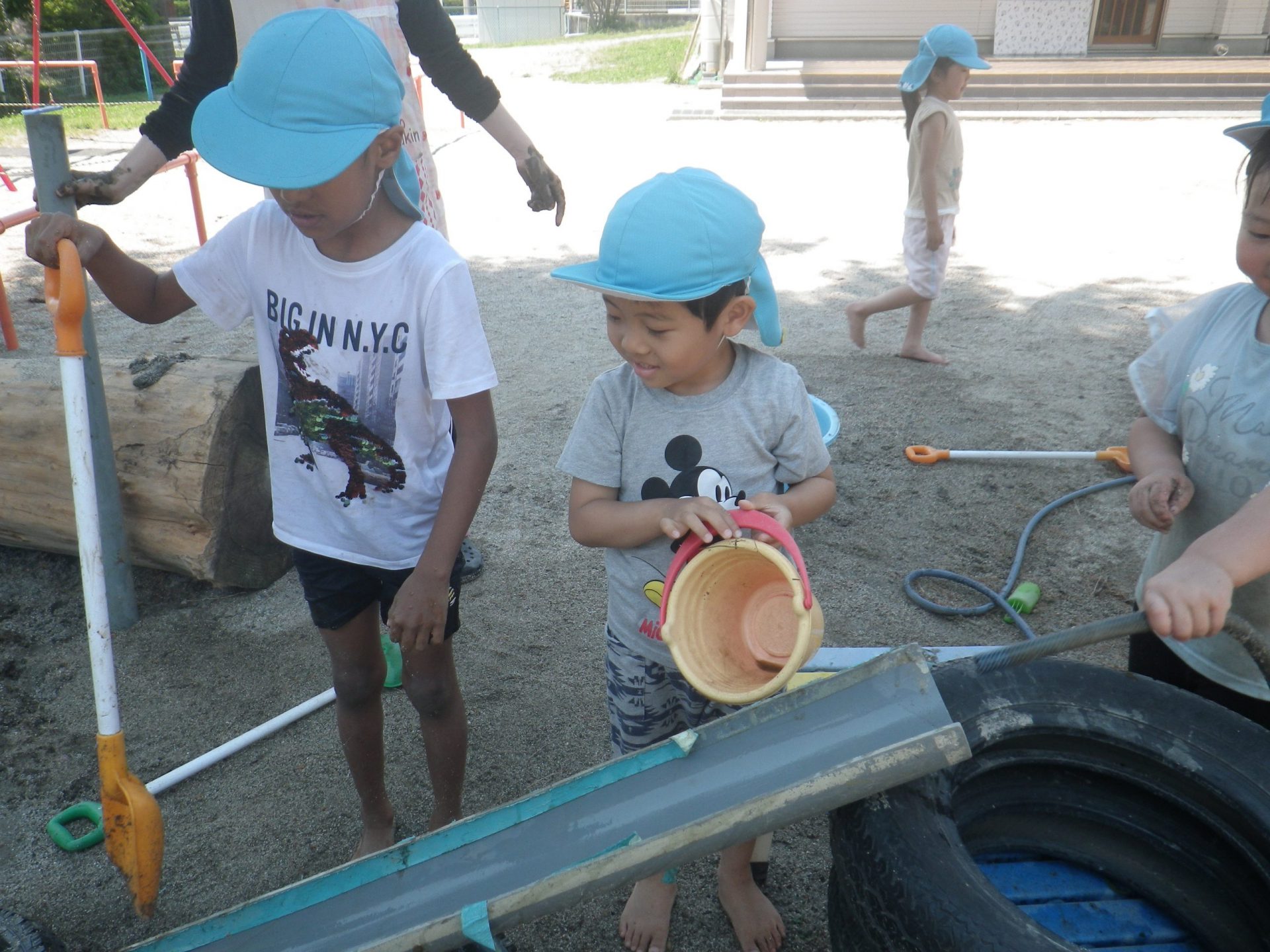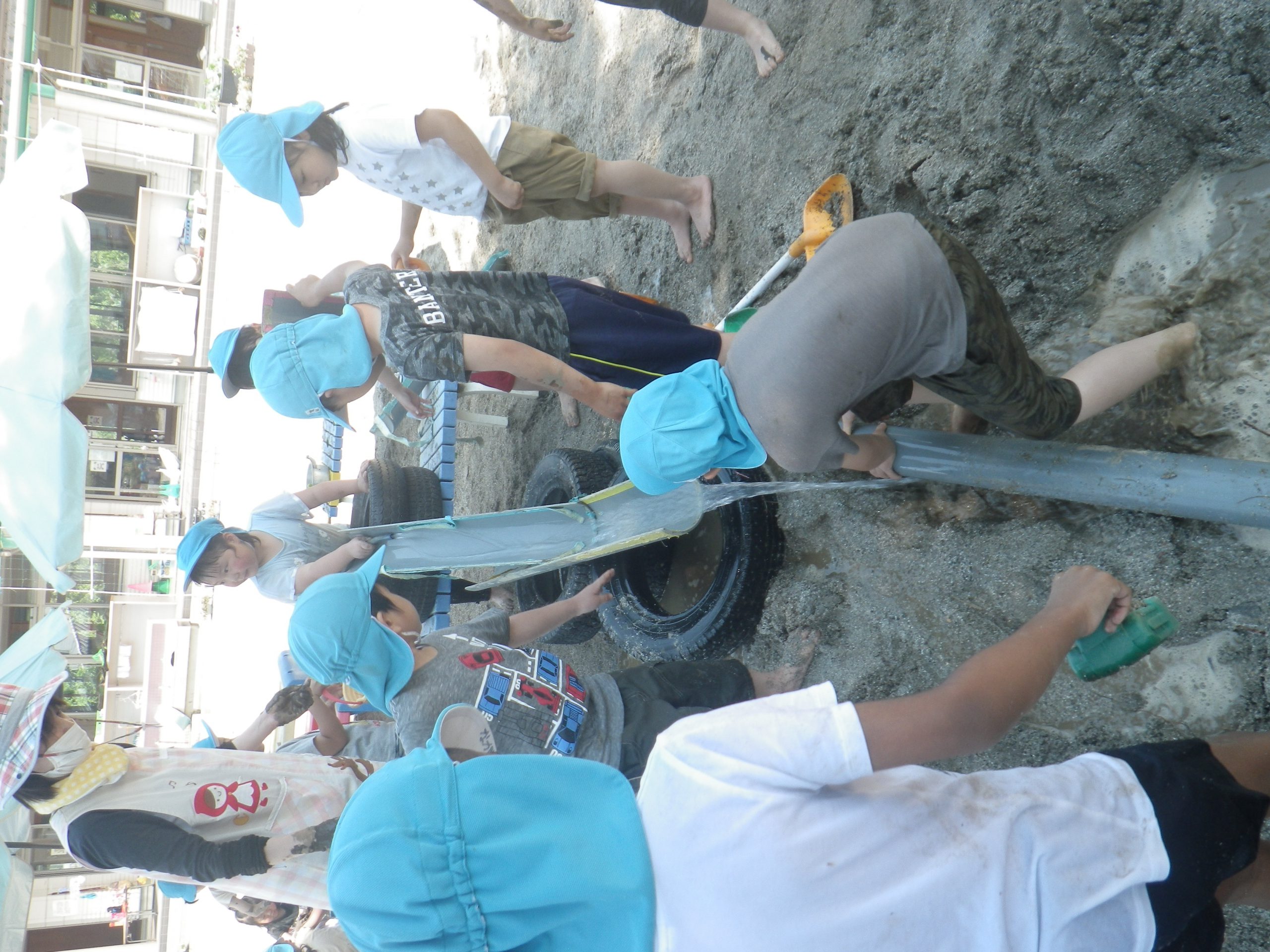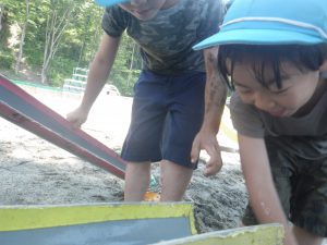 砂や土の性質の違いに気づいて様々な遊びが広がってきました。
