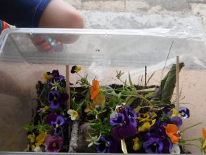 雨に夢中になっていたかと思ったら突然部屋に戻りだした子どもたち「あっ!ツマグロヒョウモンの餌あげなきゃ!」毎日大切に飼育しているツマグロヒョウモンのことに気づきお世話を始めました。