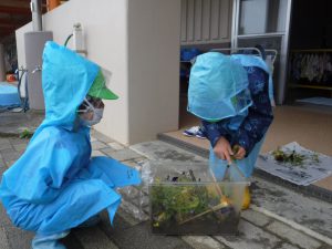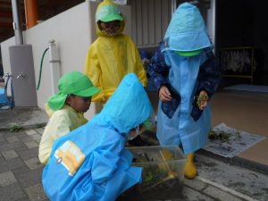 雨の日でも虫の命を大切にする子どもたちの姿がありました。
