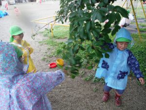 梅雨は明けてしまいましたが、その時期にしか経験できないことを大切にしながらこれからも雨の日には園庭や様々な場所へ出かけて子ども達と雨の日にしかできない発見を楽しんでいきたいと思います