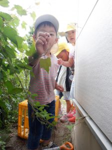 葉っぱをつけてだんご虫の遊べる場所も作りました。